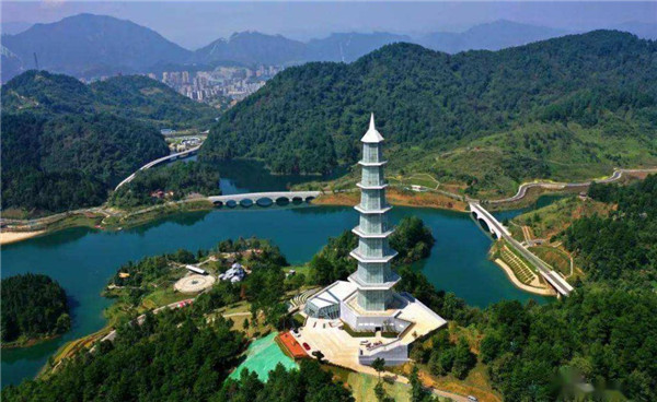 綠博園的設計構建起 " 一園、兩軸、兩區、五組團 " 的景觀風貌格局,形成 " 一心、兩環、兩帶、五區 " 的布局,一心為山水核心,兩環為生態山體外環和展園游覽內環,兩帶為濱水景觀帶和山谷景觀帶,五區為入口區、展園區、景觀湖區、山體游覽區和山體保育區。