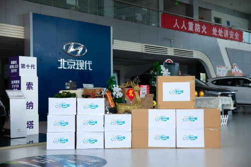 現(xiàn)代汽車車友代表向?qū)W生代表贈(zèng)送愛(ài)心物資