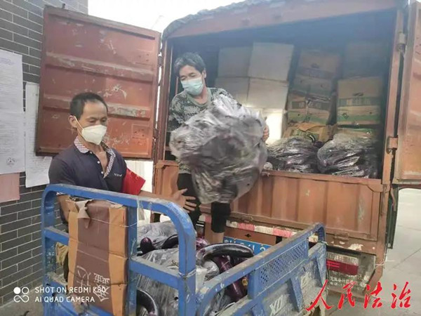 6月12日下午15時許,一輛載滿大米、雞蛋、南瓜、茄瓜等農產品的貨車到達廣州環城高速公路入口,與早已在此等候的廣州封控區工作人員匯合,在警車的帶領下,把物資送到荔灣區中南街道海中村,由群防共治小組分派到居民家中。