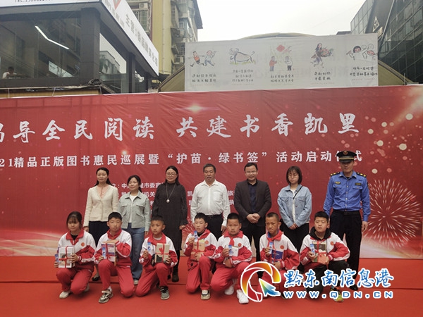 凱里”2021精品正版圖書惠民巡展暨“護苗·綠書簽”活動在中博臨街正式啟動。在開幕式現場,參加本次活動的相關部門共同給中小學生贈送書籍及綠書簽,參加本次活動的愛心企業現場捐贈5000元圖書及價值10000元的眼科優惠券。