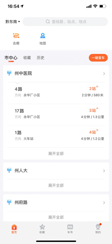 公交車到哪了,公交車還有多久到,打開 " 掌上公交 APP" →自動(dòng)定位 " 黔東南 ",首頁即可查看附近公交站點(diǎn)、站點(diǎn)公交線路、公交車到站時(shí)間距離等信息。