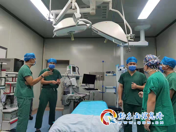 (李健民醫(yī)師、蔡日生醫(yī)師立即投入到黎平縣人民醫(yī)院的救治手術工作?h醫(yī)院麻醉科 提供)