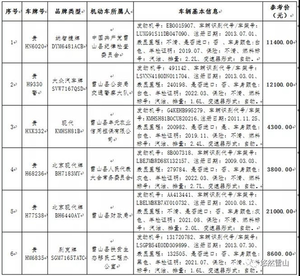 受雷山縣財政局委托,我公司于 2021 年09月15日(星期三)下午 14:30 時在雷山縣紅楓水岸4樓財政局會議室公開拍賣下列標的物:一、標的概況: