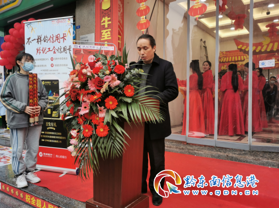 貴州銀行黔東南分行個人及小微業務部副總經理羅祥海,黎平縣總工會黨組成員、經審委主任周紅,貴州銀行黎平支行行長吳 霄,世紀華聯總經理石廷遠等出席揭牌開業儀式。(楊延治)