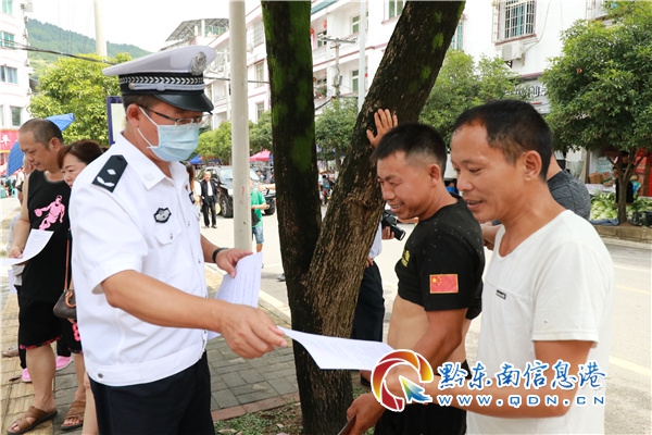 黔東南州公安局黨委委員、交警支隊長肖文斌、副支隊長黃銳到現場指導并參加宣傳活動,他們向廣大群眾講解和分析了交通事故發生的原因及交通違法行為的危害性,告誡農民朋友切勿圖一時方便,搭乘三輪車、低速載貨汽車、無牌無證車輛及其他有安全隱患車輛。并帶頭在“知危險、會避險、遠離違法、珍愛生命”交通安全千萬人簽名公益活動布上簽名。