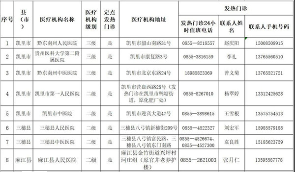 黔東南州定點發(fā)熱門診信息公示