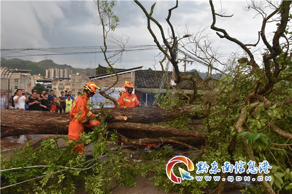 本網(wǎng)訊 5月10日下午,群眾報警稱,城關(guān)鎮(zhèn)平寧小學(xué)門口處,由于長時間刮風(fēng)下雨,導(dǎo)致一棵大樹傾倒,危及村民和過路行人的安全,急需救助。