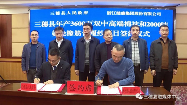 據(jù)悉,此次該縣與浙江健盛集團有限公司簽約的年產(chǎn)3600萬雙中高檔棉襪和2000噸氨綸橡筋包覆紗項目總投資1.4億元,項目全面建成投產(chǎn)后,將實現(xiàn)年銷售收入2.6億元以上,提供就業(yè)崗位1000余個。項目簽約入駐,將為推動我縣優(yōu)勢輕工產(chǎn)業(yè)向十億級目標邁進、在新征程上奮力實現(xiàn)工業(yè)大突破、開創(chuàng)工業(yè)經(jīng)濟高質(zhì)量發(fā)展新局面提供強有力支撐。