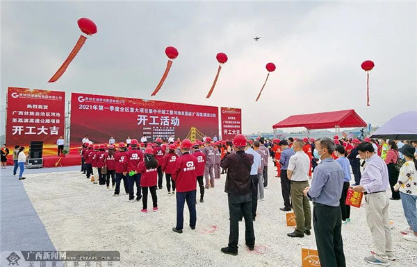 圖為廣西河池至貴州荔波高速公路項目開工儀式現場。楊天宇 攝