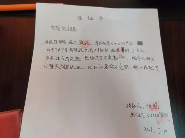 張某,男,持A2駕駛證,無視工人生命安全,選擇圖“方便”,無視交通法規,嚴重超員,交警于事發的第二天在鎮遠河濱大道將該車查獲,并責令駕駛人撰寫“保證書”,張某也因他的交通違法行為受到相應的處罰。