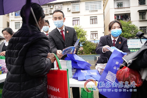除了在城區內開展普法宣傳活動,在從江縣下江鎮,從江法院下江法庭也同下江派出所、交警四中隊、司法所等部門一起,在下江鎮開展“4·15全民國家安全教育日”普法活動,將法律知識送到群眾身邊。