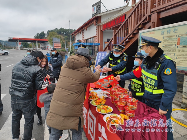 活動現場,路政員為過往司乘人員送“福袋”、送春聯,發放春運宣傳資料,宣講交通安全,并免費提供方便面、小面包、水果等食品。活動中,路政員告誡司乘人員春運即將來臨,不要在高速公路上行走,一時的方便可能是一生的悔恨;同時提醒司乘人員駕車外出注意先檢查車況,在高速公路上出現任何安全或需救援的情況請撥打12328,提醒貨車駕駛員要規范裝載,拒絕超限超載;同時年關將至各類詐騙手段層出不窮,路政員為司乘人員講解常遇到的詐騙案例,并叮囑司乘人員要提高防騙意識。考慮到天氣寒冷,路政員還為司乘人員準備銀耳粥驅寒,叮囑司乘人員注意自身防護,記得佩戴口罩。在交流中,許多務工返鄉人員說,由于疫情原因,今年回家過年的人比較少,非常感謝你們的熱情,這份福袋和春聯讓我們感受到了家鄉的溫暖。