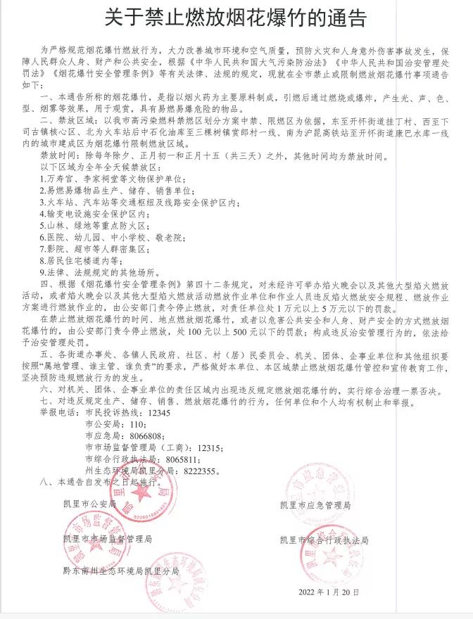 五、各街道辦事處、各鎮人民政府、社區、村(居)民委員會、機關、團體、企事業單位和其他組織要按照“屬地管理、誰主管、誰負責”的要求,嚴格做好本單位、本區域禁止燃放煙花爆竹管控和宣傳教育工作,堅決預防違規燃放行為的發生。