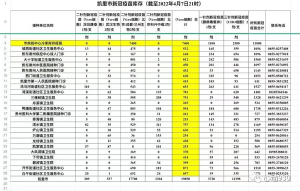 截止至 4 月 7 日 21 時,凱里最新疫苗庫存來了!
