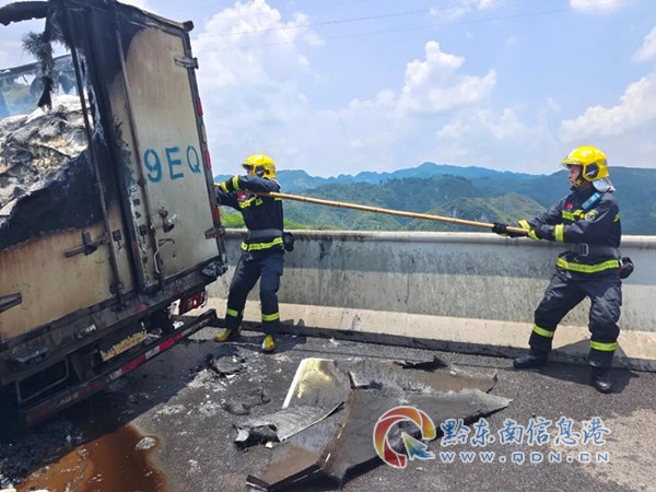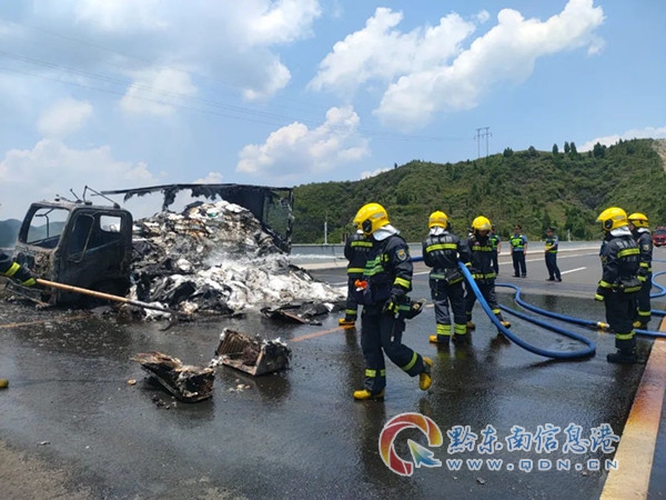 本網訊 7月6日中午12時40左右,在黔東南州S07凱里繞城高速插旗山大橋上有一貨車自燃起火。接到報警后,凱里市消防救援大隊消防救援人員迅速趕往現場。