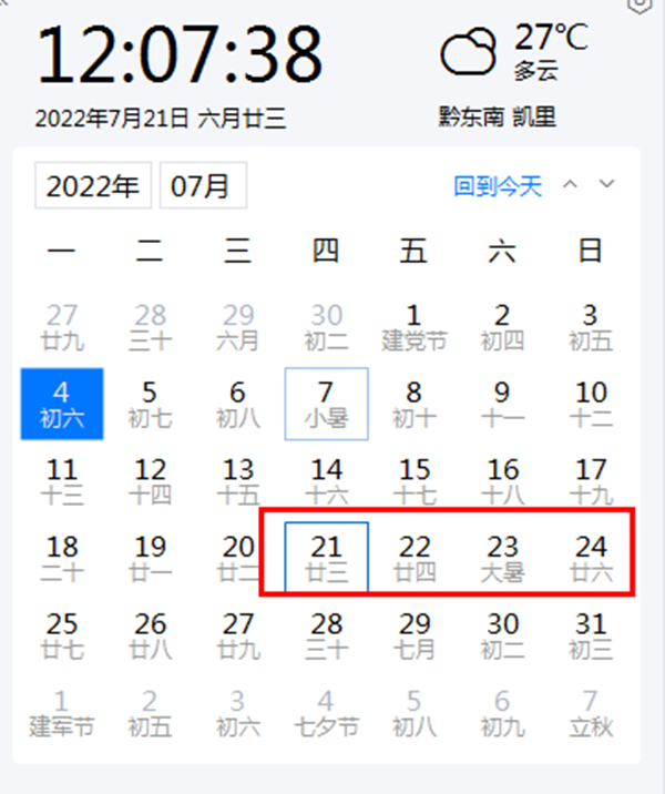 2022年7月23日(星期六)是黔東南苗族侗族自治州成立紀念日,根據《條例》關于“自治州成立紀念日、苗年或者侗年如果適逢星期六、星期日,應當在工作日補假”的規定。7月21日(星期四)至7月22日(星期五)放假,與周末連休,共4天。