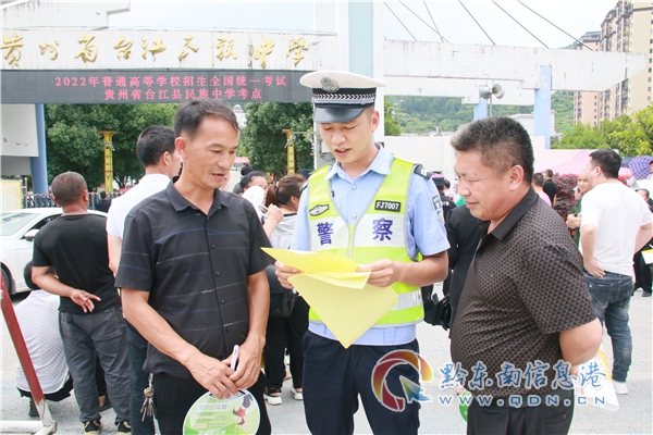 6月7日,臺江縣交警大隊開展“護航高考 交警同行”主題宣傳活動。