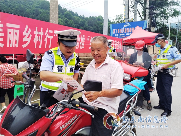 6月9日,黔東南州公安局高新區分局交管大隊組織警力走進翁堤村、同興村、新民村、白午村開展“美麗鄉村行”交通安全巡回宣傳教育活動。