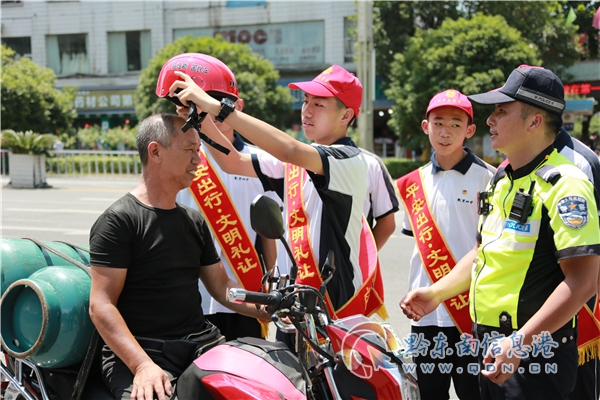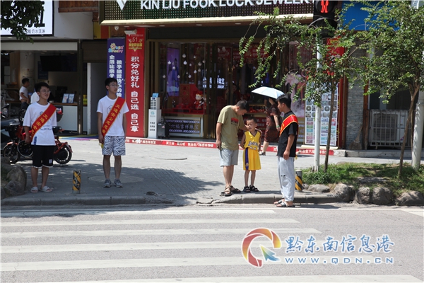 在榕江、施秉、三穗、岑鞏、鎮遠、錦屏等縣城街頭,人們會看到一群群學生在交警帶領下,在路口協助民警勸導非機動車、行人交通違法行為。這是黔東南州公安局交警支隊開展“小手拉大手 文明安全行”主題交通安全宣傳教育活動一個縮影。