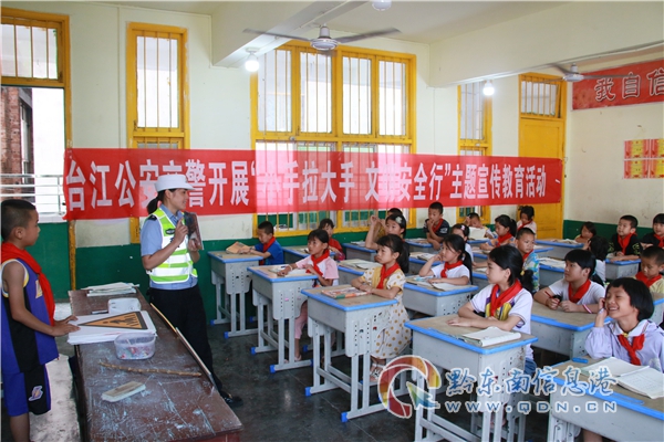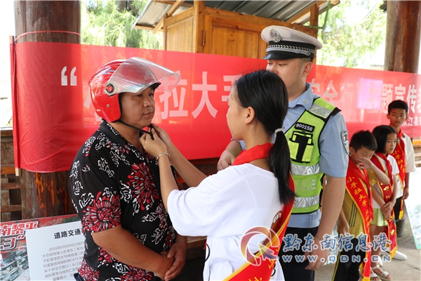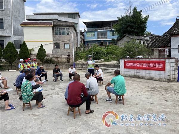宣傳民警結合“美麗鄉村行”宣傳主題,到村寨集合留守兒童和老人,以“壩壩會”的形式,讓學生向在場人員宣傳交通安全知識,發放交通安全宣傳單、講解事故案例展板,重點講解行人不能違法進入高速公路、破壞公路設施、如何安全通過馬路、騎乘車輛需佩戴安全頭盔等交通安全知識。