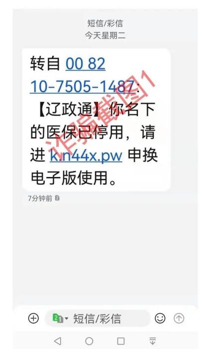 近日,遼寧省醫(yī)療保障局官方微信發(fā)布消息稱,遼寧省醫(yī)保局接到部分群眾反映,有不法分子向該省參保群眾推送詐騙短信,相關(guān)內(nèi)容為“【遼政通】你名下的醫(yī)保已停用,請(qǐng)進(jìn)******申換電子版使用”,內(nèi)含虛假鏈接(實(shí)為木馬病毒鏈接),誘導(dǎo)受害人點(diǎn)擊該鏈接。