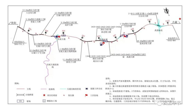 老鴰巖特大橋為貴金高速公路十三標段控制性工程,全長1612m,結構形式為40*40先簡支后結構連續T梁,該橋位于金沙縣禹謨鎮境內,上跨既有公路柳沙線,具有縱向跨度大,地勢高差大,施工難度大等特點。