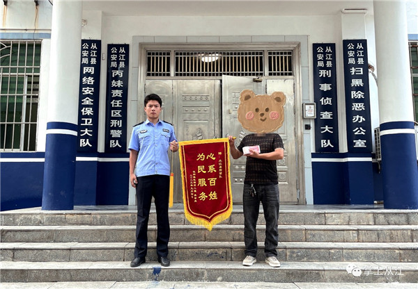該案挽回受害人全部損失3萬元,得到群眾好評,9月4日,群眾為表感謝贈送錦旗一面(從江公安局供稿)