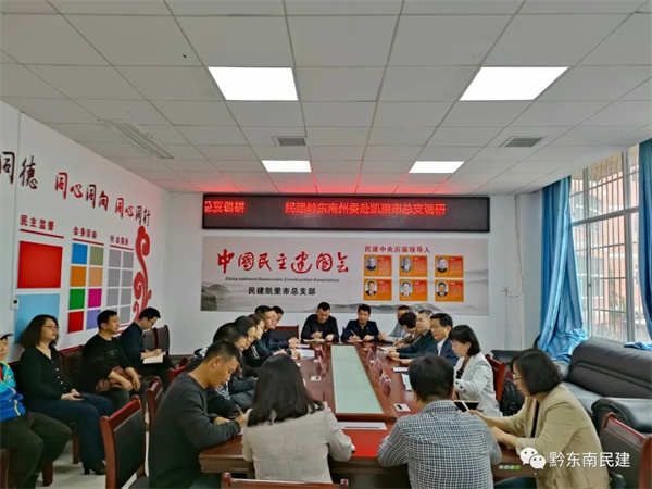 4月14日,黔東南州政協副主席、民建黔東南州委主委徐勇帶隊,赴民建凱里市總支調研座談,副主委顧秀梅、劉杰,凱里市委常委、市委宣傳部部長、市委統戰部部長陸紅參加座談。