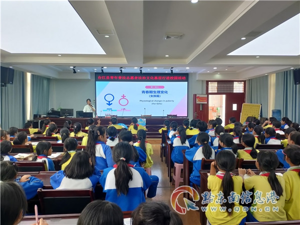 9月6日,臺江縣青年普法志愿者法制文化基層行進校園活動走進臺江縣城關一小,給四、五、六年級的500余名女生上了一堂主題為生理健康與自我保護的安全教育課。