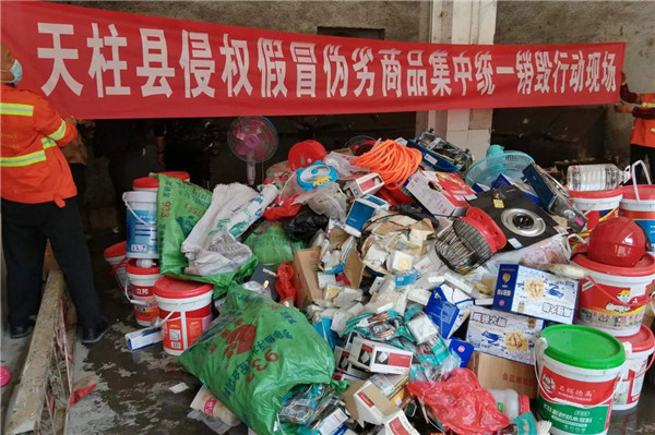 天柱公安局開展侵權假冒偽劣商品集中統一銷毀行動