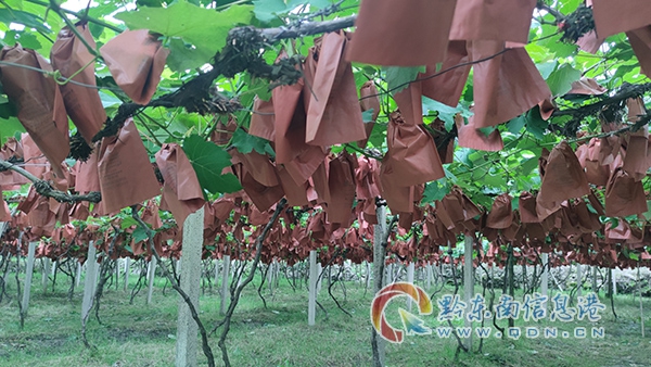 現正值汛期,雨水較多,村民們抓緊時間在天氣好的時候給葡萄套上果袋。套袋以后,可以很好的防蟲、防病、防止日灼氣灼和鳥類的危害。同時套袋,還可以使果面光滑、香氣濃、成熟度一致,有效地提高葡萄的商品價值。