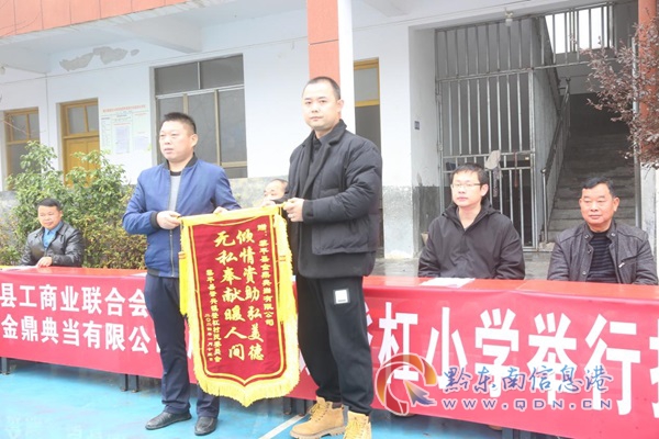 捐冬衣活動(dòng)結(jié)束后,登杠小學(xué)向愛心人士敬獻(xiàn)錦旗。