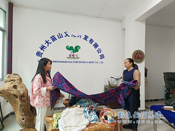 在調(diào)研中,楊丹丹仔細(xì)察看了該企業(yè)的蠟染、刺繡作品,繡片及布料,并與企業(yè)負(fù)責(zé)人親切交流,聽取了刺繡企業(yè)的生產(chǎn)經(jīng)營、刺繡繡法、學(xué)習(xí)培訓(xùn)等方面的情況匯報,了解了該企業(yè)經(jīng)營思路及發(fā)展方向,并鼓勵企業(yè)積極創(chuàng)新、搶抓機(jī)遇,多與同行企業(yè)交流學(xué)習(xí),將產(chǎn)品細(xì)節(jié)做到最好。她強(qiáng)調(diào),要把傳統(tǒng)刺繡技藝與現(xiàn)代生活、時尚創(chuàng)意相結(jié)合,把傳統(tǒng)苗繡技藝轉(zhuǎn)化為現(xiàn)代生活消費(fèi)品,把苗族刺繡傳承發(fā)展好,把傳統(tǒng)刺繡做大做強(qiáng),創(chuàng)造更好的就業(yè)崗位,能夠帶動更多婦女創(chuàng)業(yè)就業(yè)。