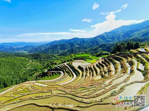 “桃源梯田起源于唐宋,發展于明末,盛于清朝,到現在有著一千多年的歷史。隋唐中原戰亂,流離失所的百姓紛紛南遷,并漸漸形成了客家一族,藏匿在南方山野。明清前后,沿海一帶又是戰亂動蕩,百姓從廣東梅州、福建汀州等地遷徙來到遂川,為了不與本地居民爭田爭產,他們就在大山里面開山造田,造田種糧,日出而作,日入而息,創造了桃源梯田這個美麗家園。”據當地導游介紹,隨著經濟的發展,當地大山深處的村落通了公路,奇特的梯田風光吸引了各地的游客,旅游業發展的同時,也帶動了當地村民增收。