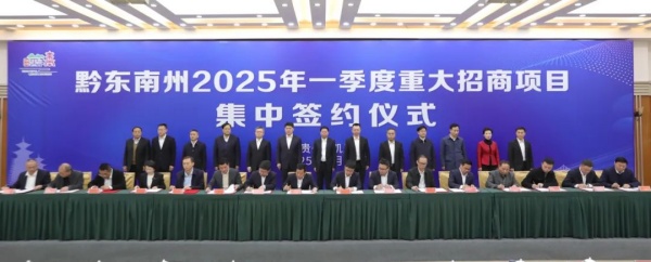 2月13日,黔東南州舉行2025年一季度重大招商項目集中簽約儀式。省政協副主席、州委書記李建,州委副書記、州長楊光杰,州委副書記胡志峰,州領導譚海、陳曦、譚夔、劉隆俊、陳正鋒、王春雷、羅青、龍家勝、龍濱、唐斌出席儀式并見證簽約。副州長王建華主持簽約儀式。