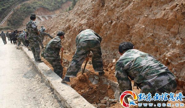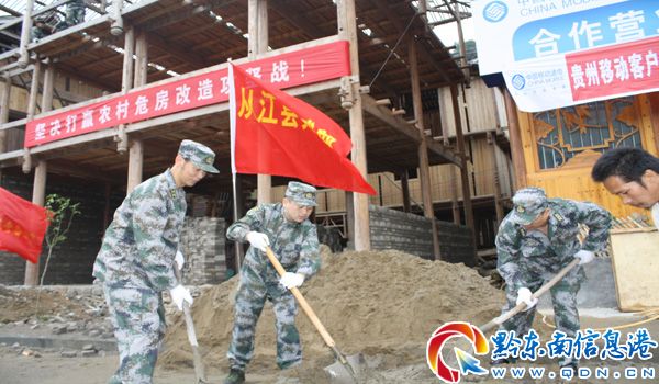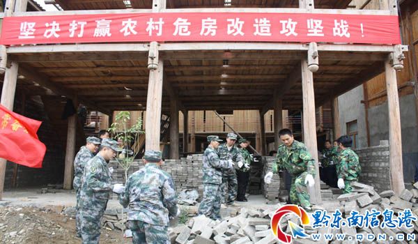 從江人武部組織干部、職工和民兵應急分隊參加高增鄉開展危房改造