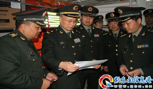 成都軍區政治部鄭道光副主任檢查從江人武部器材室