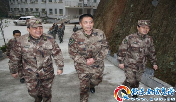 原軍分區江貽燦政委陪同省軍區李軍憲副司令員到從江檢查指導工作
