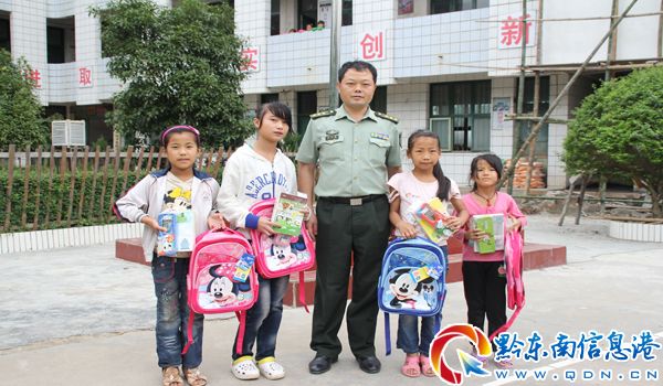 從江人武部羅利榮政委到慶云小學給貧困學生送去學習用品和生活費