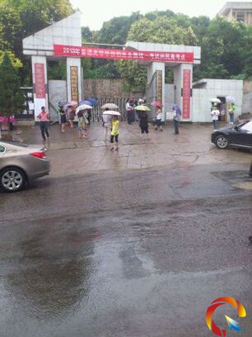 冒雨走出考場(chǎng)的考生 考生走出考場(chǎng) 校門口等待的愛心車 頂雨回家的考生