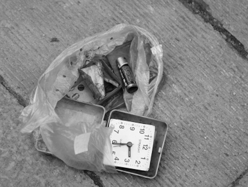 爆炸的電池和鬧鐘。記者 楊濤 攝