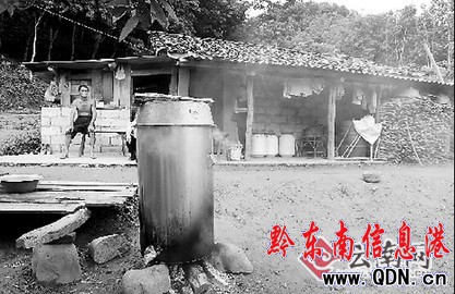 由于康萬(wàn)年和高祖橋兩戶(hù)人家的家人都外出干活,記者一靠近房屋就受到正在屋前烤酒的高祖橋父親高某的熱情招呼。
