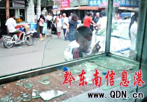 昨日上午,馬路兩側30余家飯店、超市、水果店等商鋪門窗均被砸碎,街面布滿碎玻璃碴。