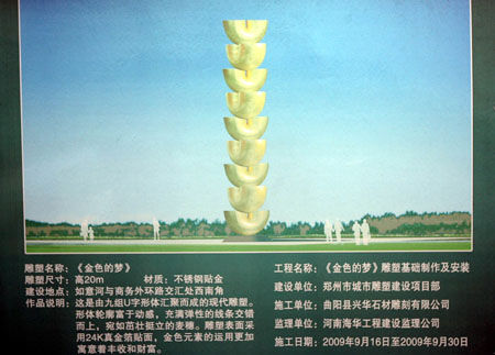 鄭州擬耗資30萬用1公斤黃金為雕塑貼金箔
