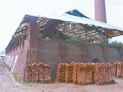 黃陂一磚廠生產(chǎn)大量實心紅磚。