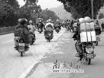 珠三角10萬農民工組摩托車大軍返鄉(xiāng)