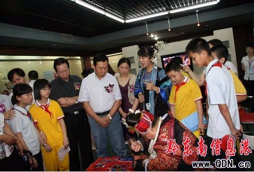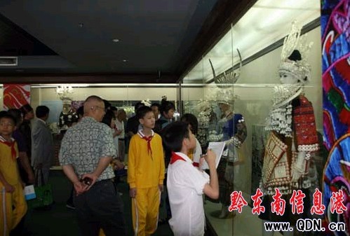 開幕式結束后領導和觀眾興致勃勃的參觀了展覽。解說員為參觀者們詳細講解了我州展出服飾的特點和歷史背景。此次民族服飾展共展出了我州10個世居民族的60余套近800件服飾、銀飾、刺繡展品,展期為一個月. 展品種類繁多,彩紛呈,這些積聚民族性、多樣性、實用性、區域性特點的民族服裝服飾為海內外來賓展現出了我州一幅幅獨具風情的民族山鄉畫卷,給參觀者留下了深刻的印象。