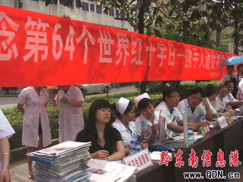 5月8日,是第64個世界紅十字日,為隆重紀念這一節日,省紅十字會,州人民醫院、貴醫二附院、州中心血站,州中醫院等州級9家醫療單位在州中行門前舉行了,以發放宣傳資料,宣傳展版,義診資詢等多種形勢的宣傳活動,州紅十字常務副會長李潤英,副會長兼秘書長宴志及9家醫療單位的負責人到現場參加了宣傳活動。今年紅十字宣傳主題是“攜手人道促和協,自愿服務為民生”。