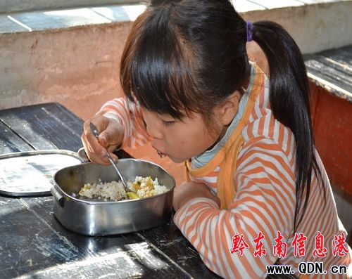 貧困攔不住的渴望:楊春碧,一位山區的兒童,正在教室里吃午飯