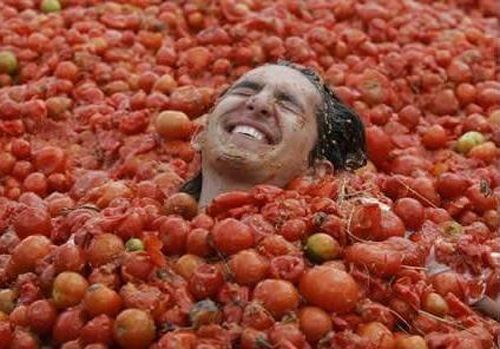 番茄浴 美國(guó)佛羅里達(dá)州最近十分盛行番茄浴。番茄富含維生素、磷、纖維素等營(yíng)養(yǎng)物質(zhì),因而當(dāng)?shù)鼐用裾J(rèn)為番茄具有細(xì)嫩、紅潤(rùn)肌膚的功效,他們常常定期浸泡番茄浴,其方法是將番茄汁加入少量酒精、硼酸攪拌均勻后倒入水溫適宜的浴池中即可。番茄浴的推薦浸泡時(shí)間為25分鐘。